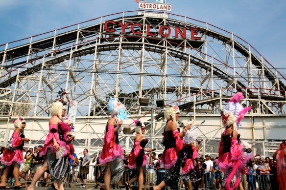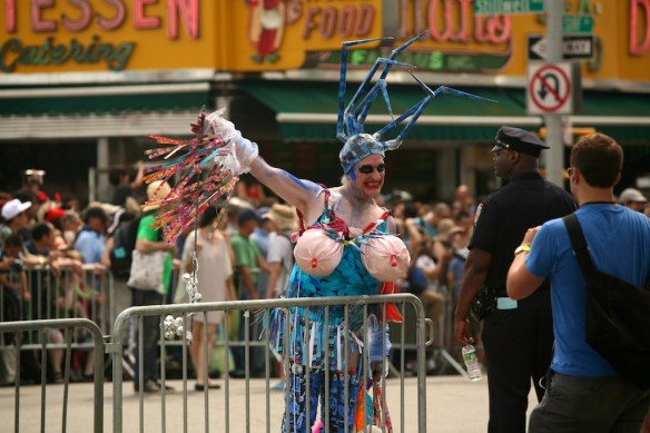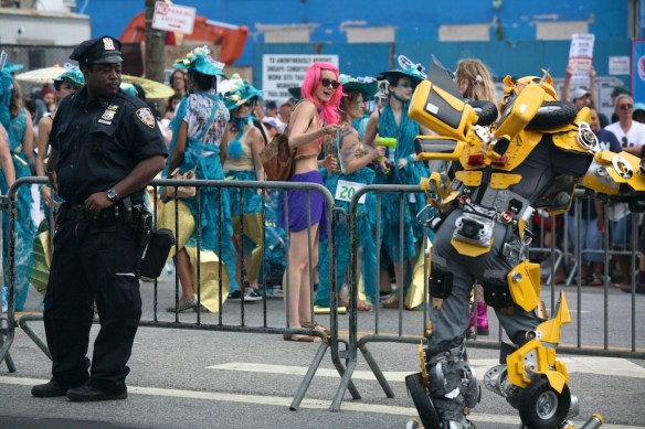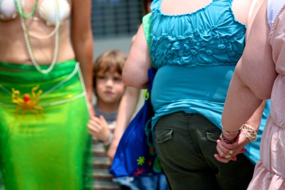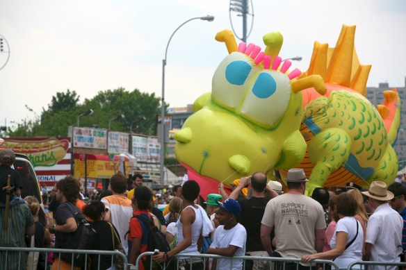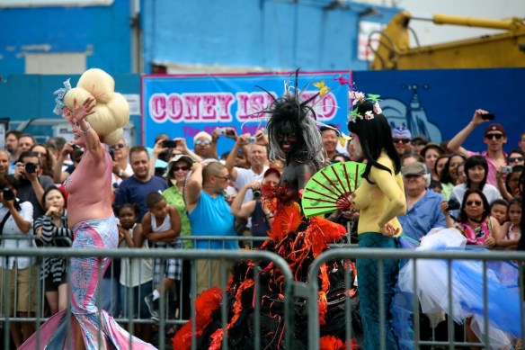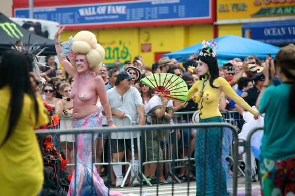 I decided my first New York weekend had to be done the right way, filled with paisleys and perverts. Stepping onto the Coney Island bound N train, I couldn’t fathom the degree to which my senses would be assaulted. Despite previous mental preparation, my mind’s visions of Ariel and Sebastien sharply contrasted the “experience” (since no other word adequately captures the ordeal) of blobby body paint and gelatinous man-boobery. Pictures after the break