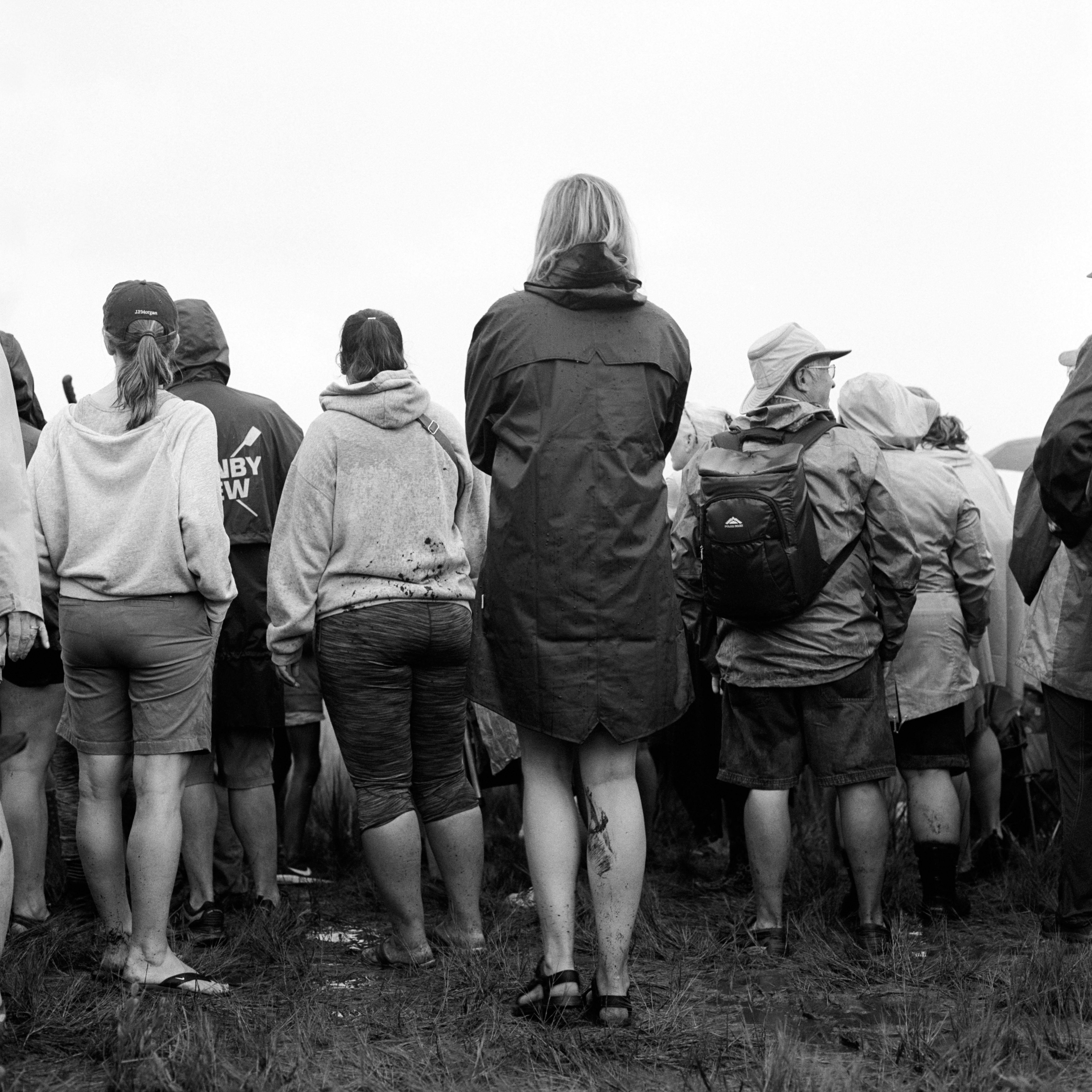 That’s us, knee deep in stank, waiting in the wet with 350 of our closest friends.